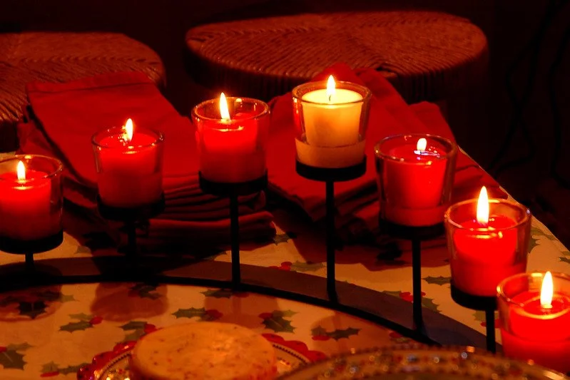 Here’s a photo from The Season…dinner by candlelight on Christmas eve…with my “adoptive family” in Eugene. Even if the weather outside was frightful, the company was totally delightful.