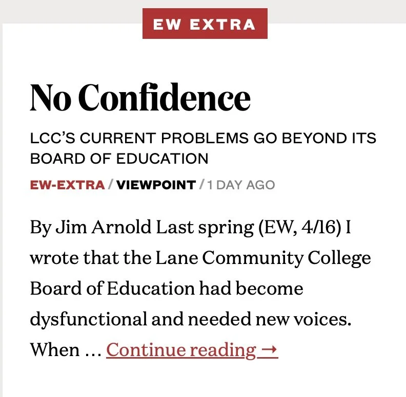 So here’s why I’m making the effort to offer up this analysis: I believe that Lane Community College is not just another local institution. It is a cornerstone of opportunity in Lane County. Thousands of students rely on LCC each year to launch careers, retrain for new jobs, or prepare for university transfer. For it to thrive, it needs a Board that can work together with professionalism, focus, and respect. Right now, that is not the Board we have.
